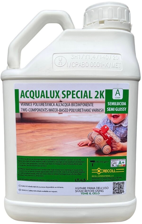 • Лак для паркета Recoll ACQUALUX SPECIAL 2K SEMILUCIDA (SEMI GLOSSY) 5(4,5+0,5)л (полу